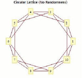 A regular network with ten nodes and four links from each node to the closest four nodes within the network. Reference: Graham, B (2012)